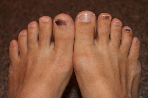 Este trastorno se suele producir a causa del calzado elegido para correr. Normalmente tiene lugar cuando éste es demasiado corto, tanto que las uñas rozan con la zapatilla y al permanecer oprimidas acaban por ponerse de color negro a causa de la sangre que se queda estancada debajo de las uñas a causa de este roce y la presión que sufren contra el calzado. Este trastorno lo sufren muchos corredores y suele ir acompañado de molestias y dolores en la zona afectada.