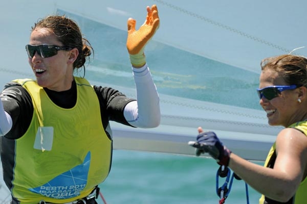 Tara Pacheco y Berta Betanzos reciben el galardón después de proclamarse campeonas en los Mundiales de Vela de Perth 2011 (Australia) tras haber logrado el título europeo en Helsinki y superar los éxitos del año 2009, en el que fueron subcampeonas del mundo y de Europa.